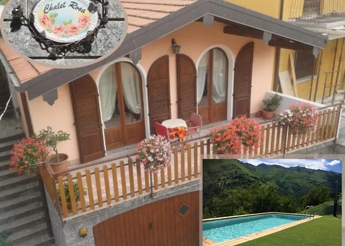 Az 1 hálószobát kínáló Chalet Con Piscina Villa egy kinti úszómedencét kínál terasszal, ahonnan hegyre nyílik kilátás. A Giardino del Merlo 2 km-re van az ingatlantól.
